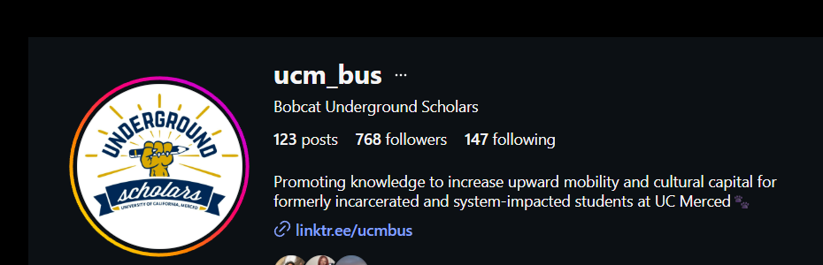 In Fall 2021, Underground Scholars was developed to support the academic and personal experiences of formerly incarcerated and/or system impacted scholars and their families at UC Merced.